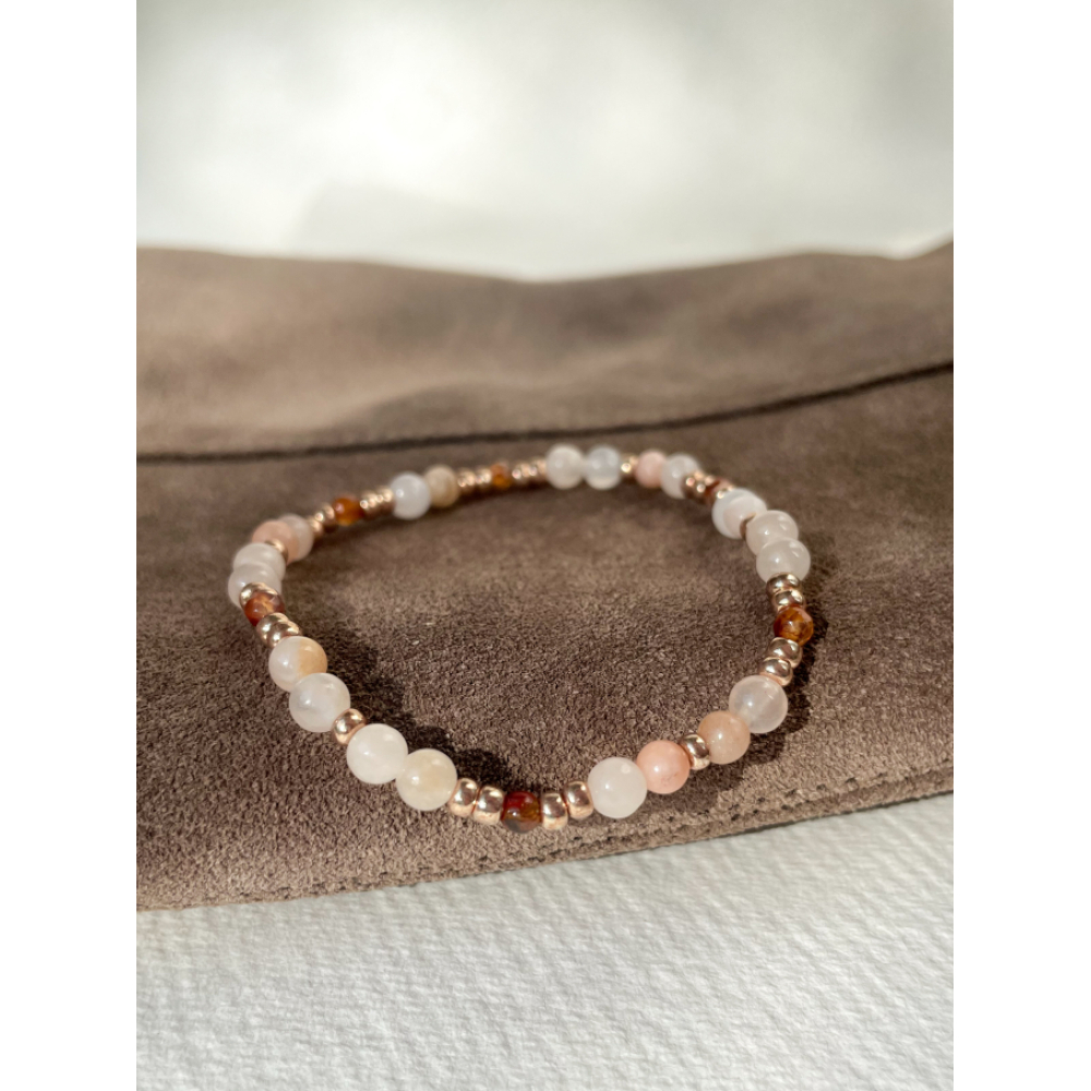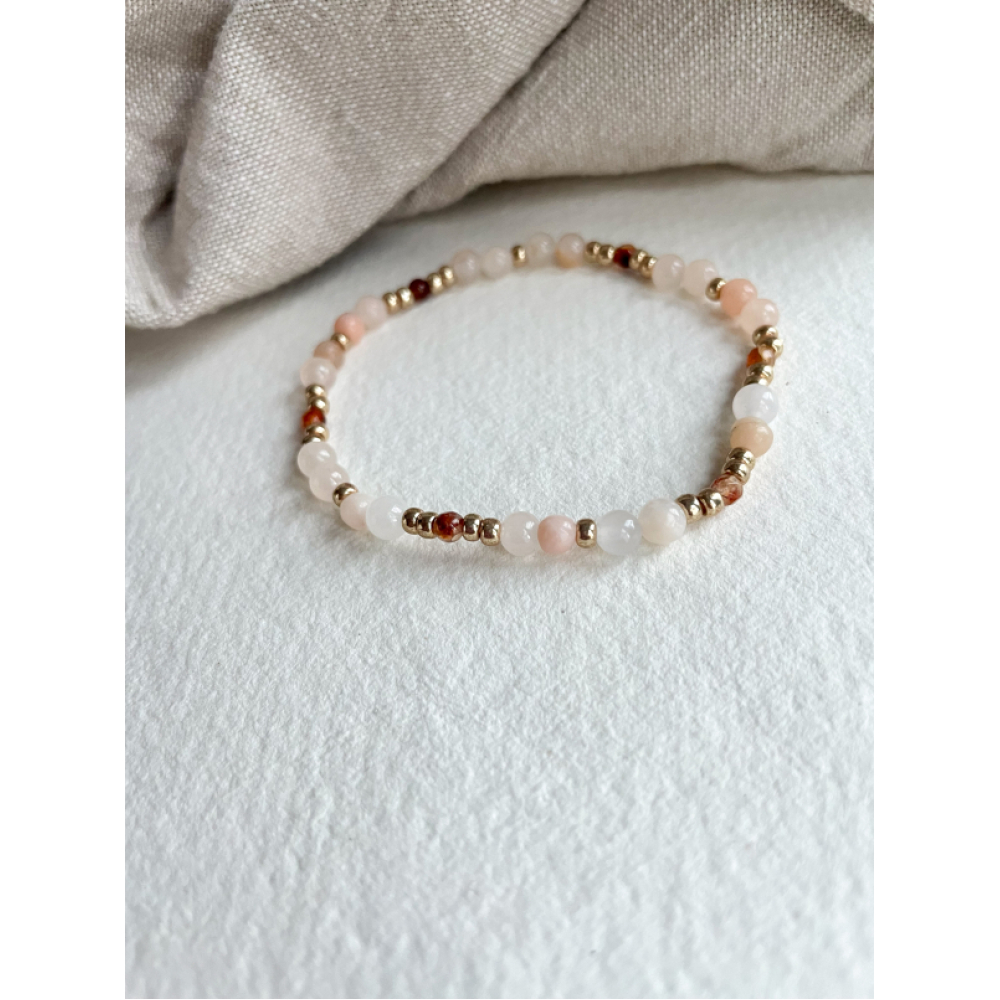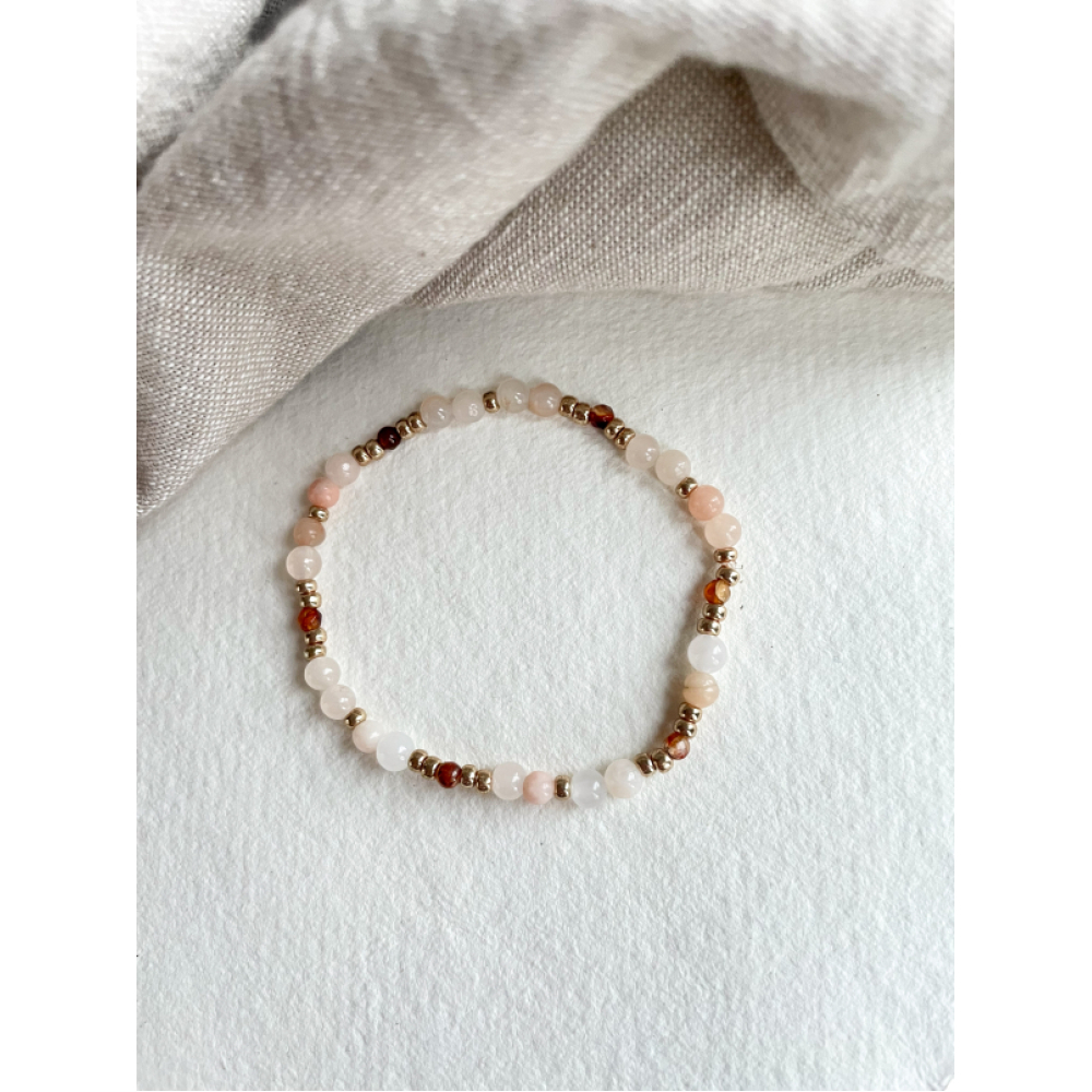 Dit armbandje matcht perfect met bruin, taupe en beige door de gouden, bruine en lichte tint kralen.