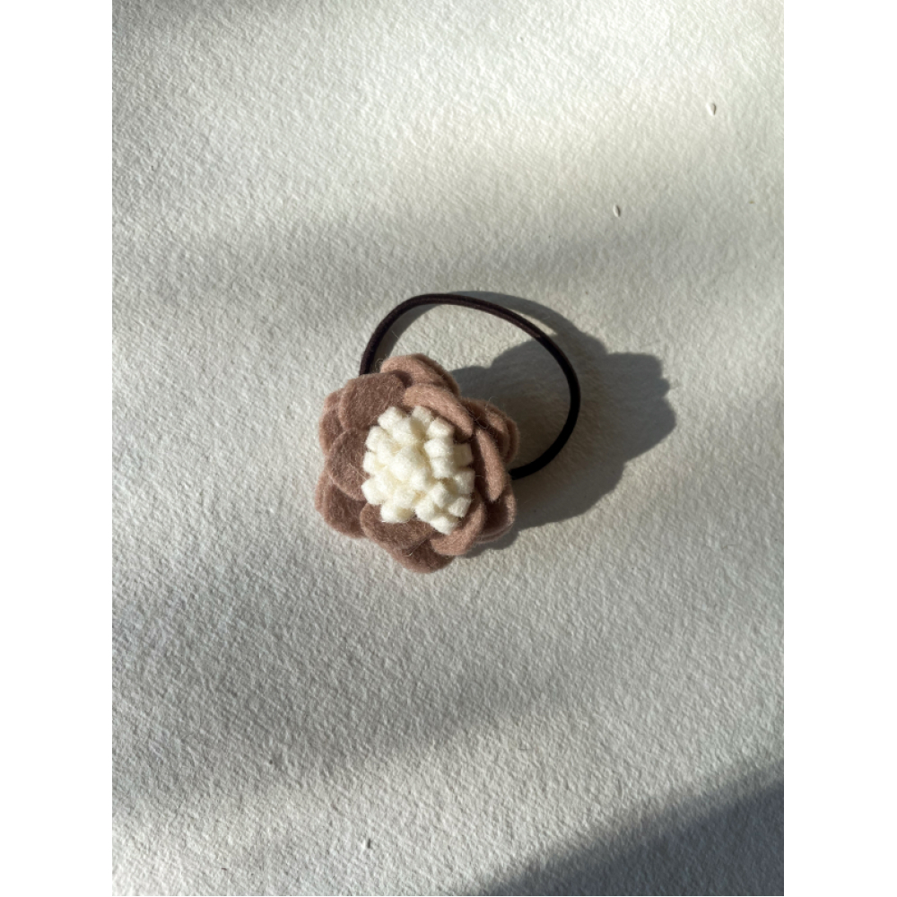 De bloemetjes op het elastiekje worden met de hand gemaakt en iedere bloemetje is daardoor uniek. Het wordt gemaakt van natuurlijk 100% wolvilt en bestaat voor 70-100% uit Merinowol en andere zachte Europese wolsoorten.