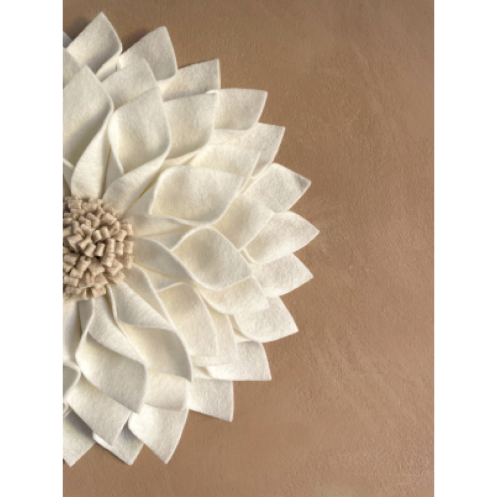 De wandbloemen worden met de hand gemaakt en iedere wandbloem is daardoor uniek. Het wordt gemaakt van natuurlijk 100% wolvilt en bestaat voor 70-100% uit Merinowol en andere zachte Europese wolsoorten.